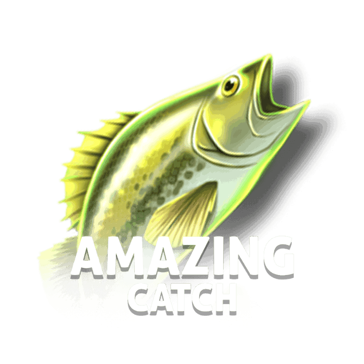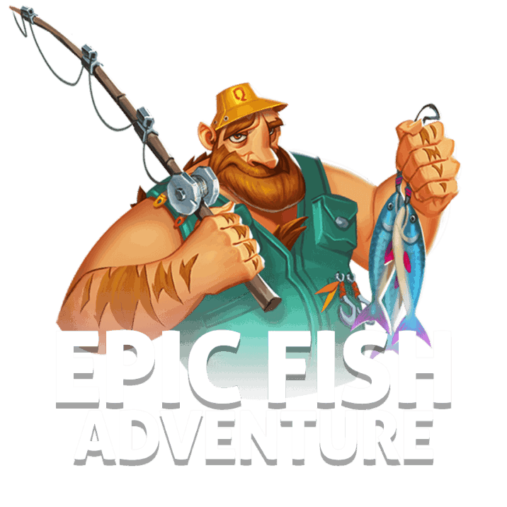 This game features a cartoon-style fisherman holding a fishing rod with a fish on the line, set against a muted background. The visual emphasizes a fun and adventurous fishing theme with vibrant colors.