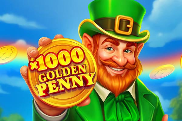 This game features a cheerful leprechaun holding a gold coin with the text "x1000 Golden Penny," emphasizing luck and wealth. The visual style is bright and colorful, inviting players to chase big wins through spin opportunities. It offers high payout multipliers and bonus features